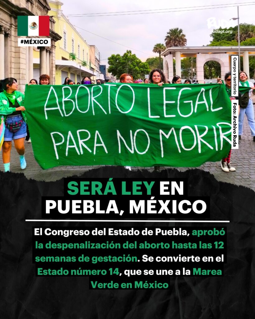 Con Puebla ya son 15 los estados en donde el aborto está despenalizado hasta las 12 semanas de gestación: Ciudad de México, Coahuila, Baja California, Baja California Sur, Colima, Hidalgo, Oaxaca, Veracruz, Quintana Roo, Guerrero, Aguascalientes, Sinaloa y Jalisco, aunque todavía falta que el Congreso jalisciense acate el mandato del Tribunal Colegiado.