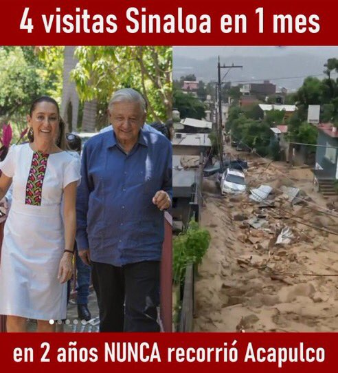 Desde el lunes, la respuesta de las autoridades locales de Guerrero ante la emergencia por el desastre natural como la gobernadora del estado, Evelyn Salgado; la presidenta municipal de Acapulco, Abelina López Rodríguez, ha sido de agradecimiento a AMLO, quien no se ha parado en la entidad desde hace dos años ni siquiera para tomarse la foto. Este fin de semana tampoco suspendió su gira programada por Sinaloa para inaugurar obras como el año pasado tras el paso del huracán “Otis”. Durante su sexenio, AMLO visitó 26 veces Sinaloa.