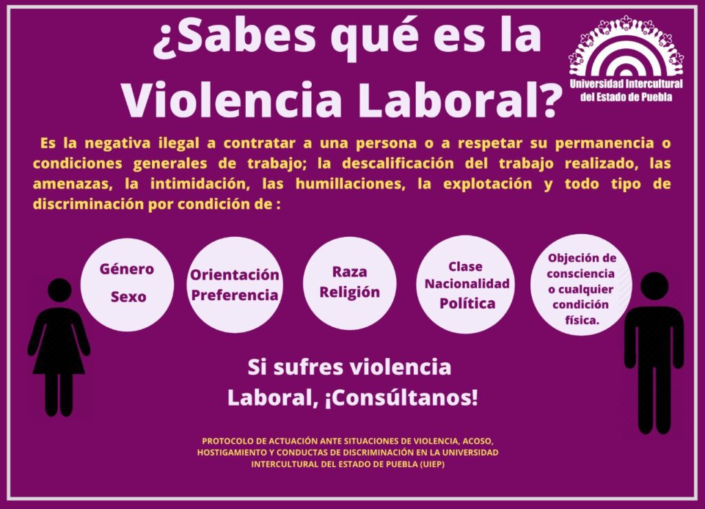 Infografia sobre la violencia laboral/Fuente: Universidad Intercultural del Estado de Puebla