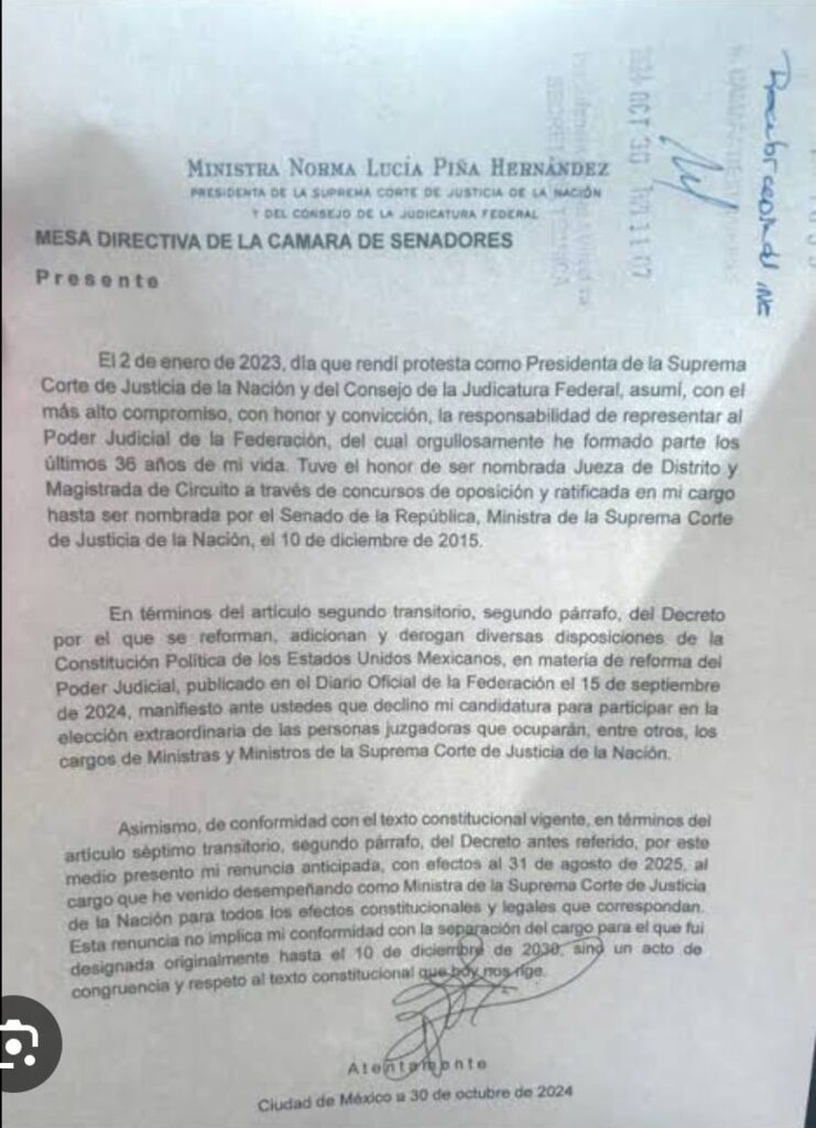 Los ministros no fueron los únicos que renunciaron a seguir sirviendo a la nación, 845 de 1699 juzgadores que hay en este país también renunciaron y declinaron a participar en la elección de junio del 2025.