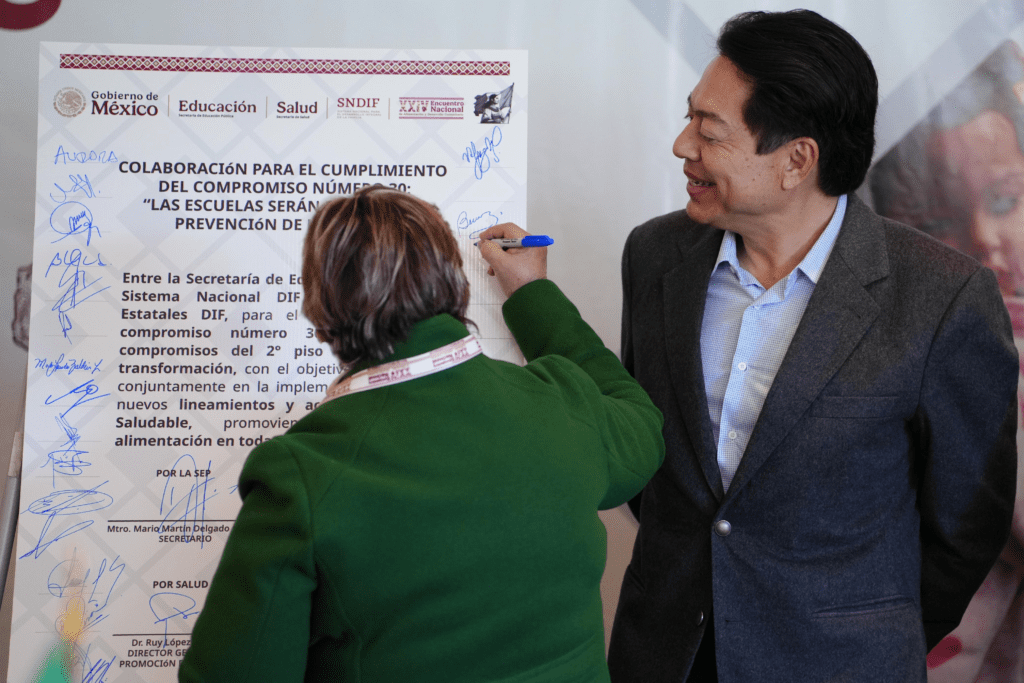 Ciudad de México.- Como parte de las primeras apariciones públicas del secretario de Educación, Mario Delgado Carrillo, este jueves acudió al XXIV Encuentro Nacional de Alimentación y Desarrollo Comunitario del Sistema Nacional para el Desarrollo Integral de la Familia (SNDIF), en donde señaló que “las escuelas deben asumirse como el espacio natural para la promoción de hábitos saludables y la prevención de adicciones” y propone una estrategia basada en el acuerdo 30/09/2024, emitido por Andrés Manuel López Obrador, el cual pretendió regular la elaboración y venta de alimentos ultraprocesados y con bajo valor nutricional en espacios escolares, mediante la promoción, prevención, sensibilización de riesgos, campañas de difusión y promoción de estilos de vida y hábitos alimenticios saludables.