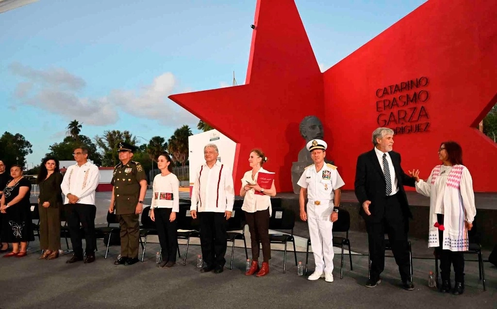 El 23 de septiembre de 2024, AMLO depositó los restos (cinco centímetros de hueso, por lo que no se puede llamar restos óseos ni osamenta) del revolucionario antiporfirista, Erasmo Catarino Garza Rodríguez, en un nicho, junto al busto y monumento que el escultor Pedro Reyes realizó en su memoria, junto al puente Puerta México, en Matamoros, Tamaulipas, de donde era originario.