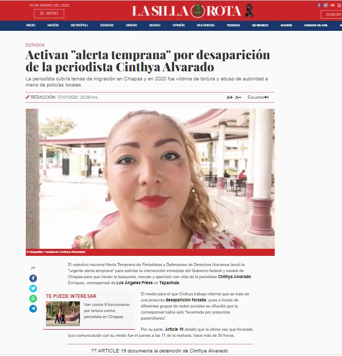 A las 16:11 pm aproximadamente, Alvarado se siente muy amenazada cuando ve al ex director de la policía municipal, Pedro Enock García Palazuelos Domínguez -de camisa naranja- estacionarse al frente de la camioneta donde ella estaba, ya que fue el encargado de la primer detención ilegal y arbitraria que sufrió el 27 de enero del 2020, al estar transmitiendo en vivo una manifestación de pobladores de la zona Mam de Tapachula