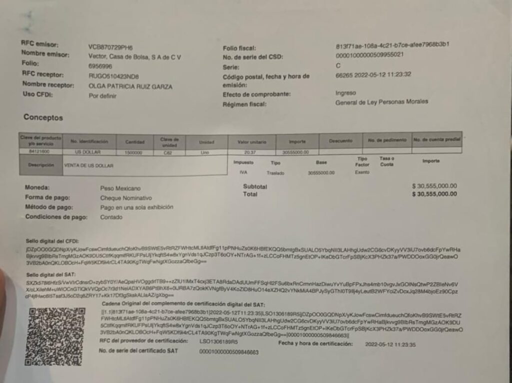 ¿Será que hablaban de los 30 millones 555 mil pesos que la madre de Sosa Ruiz cambio a dólares el 12 de Mayo del 2022, apenas 6 meses después del asesinato de Sergio Carmona Angulo?
