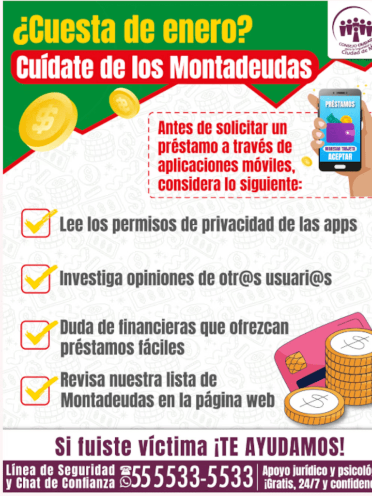 Si fuiste víctima de los Montadeudas y necesitas información de cómo protegerte, marca de manera gratuita y confidencial al 55 5533 5533, la Línea de Seguridad y Chat de Confianza del Consejo Ciudadano. Está disponible las 24 horas del día, los 7 días de la semana, a nivel nacional.