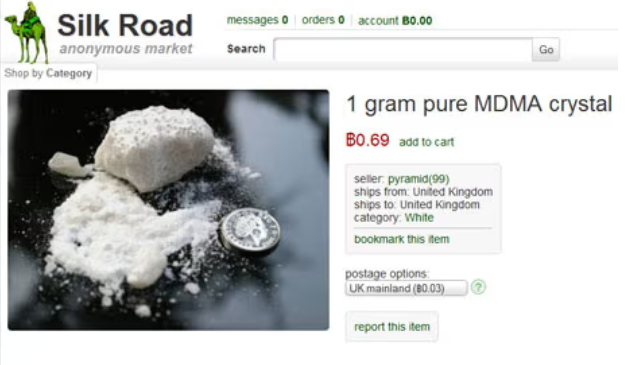 Silk Road, en español Ruta de la Seda, hace referencia a la histórica ruta comercial que, a partir del siglo II a. C., conectó Oriente y Occidente, abarcando principalmente Asia, Europa y el norte de África. De manera similar, el sitio web logró establecer un mercado global de venta de drogas, que según el Buró Federal de Investigación (FBI, por sus siglas en inglés) de los Estados Unidos, incluía un listado de 13 mil sustancias controladas, clasificadas en categorías como “Cannabis”, “Disociativos”, “Éxtasis”, “Intoxicantes”, “Opioides”, “Precursores”, “Recetados”, “Psicodélicos” y “Estimulantes”.