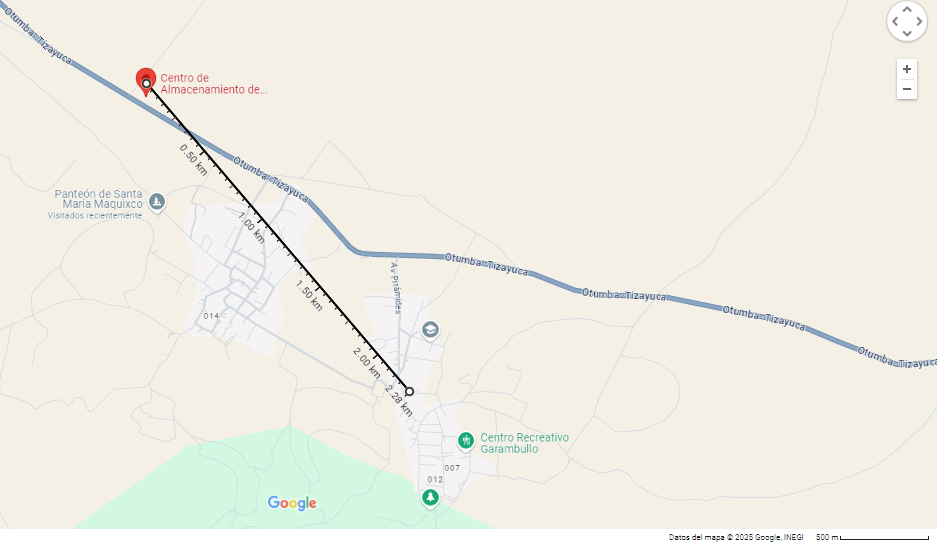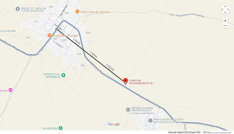 Otro de los señalamientos de la CNSNS sobre la ubicación segura para los desechos radiactivos indica que “la posibilidad de uso futuro como zona industrial o habitacional debe ser baja”. Sin embargo, esta condición no se cumple en el CADER, ya que a tan solo un kilómetro se encuentra la comunidad de Santa María Maquixco, que en 2020 tenía una población de 923 personas, según el Instituto Nacional de Estadística y Geografía (INEGI).