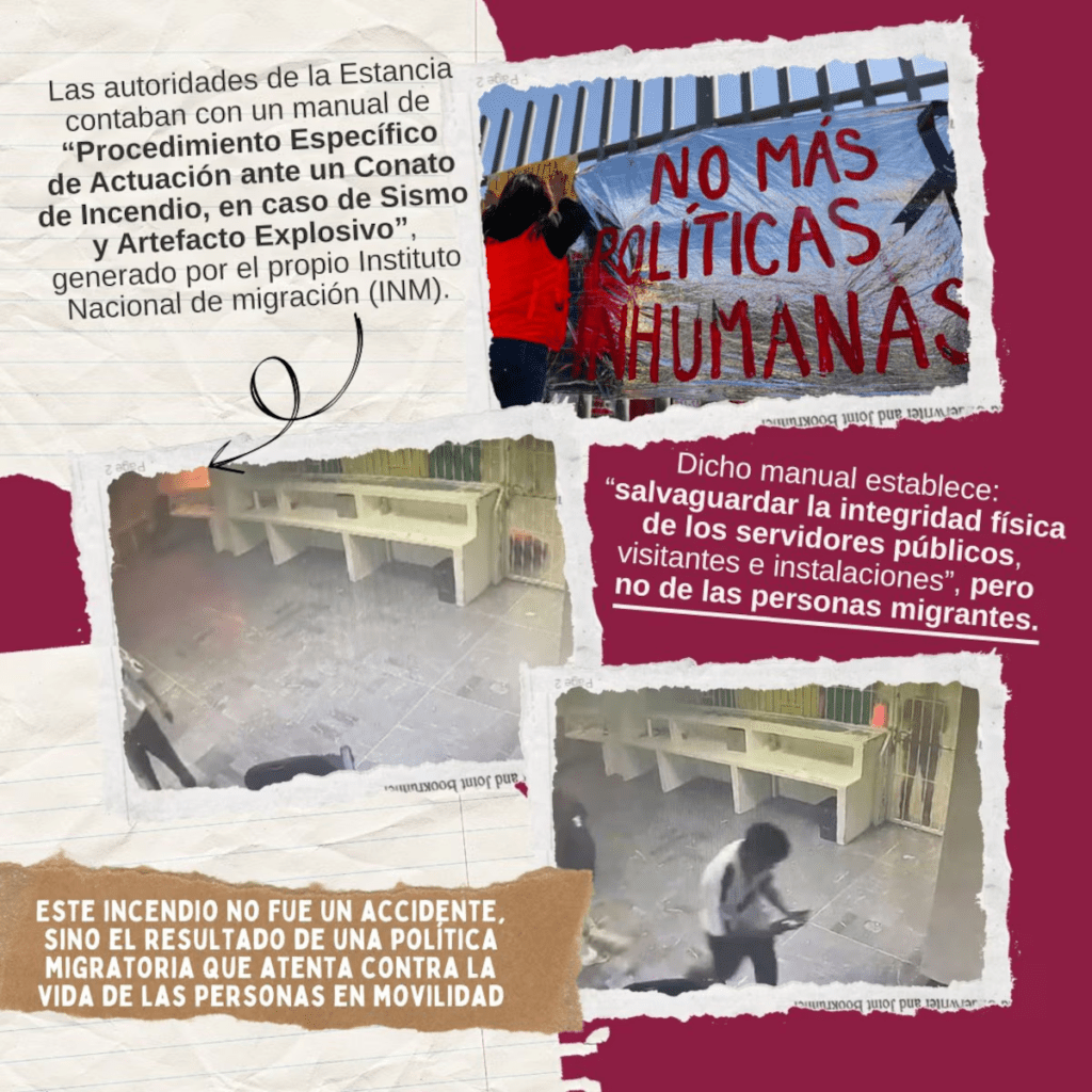 Al cumplirse dos años del incendio de la Estación Migratoria Lerdo-Stanton, en Ciudad Juárez, Chihuahua -el 27 de marzo de 2023- donde murieron 40 migrantes latinoamericanos, familiares de las víctimas se manifestaron afuera de Palacio Nacional, donde señalaron que la tragedia no fue causada por las llamas, sino por “políticas migratorias inhumanas” del Estado mexicano.