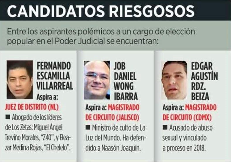 Entre los aspirantes a cargos de elección dentro del Poder Judicial, destacan los primeros seis impresentables, aquellos por los que nadie en su sano juicio pudiera emitir su voto como aval, para que ocupen una posición de juzgadores.