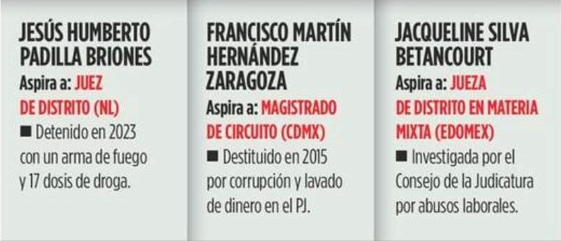 Otro caso especial es el abogado Francisco Martín Hernández Zaragoza, quien aspira ser magistrado de la Ciudad de México, ello a pesar de que este sujeto fue destituido del Poder Judicial de la Federación por actos de corrupción y el encuadramiento del delito de Lavado de Dinero.