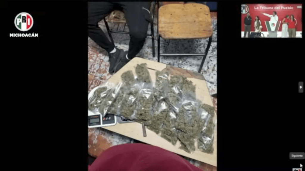 El Sol de Morelia indica que sus declaraciones fueron acompañadas de dos fotografías en las que se observan bolsas con presunta marihuana sobre una butaca. El argumento de Valencia Reyes es que los pisos de la Escuela Normal Vasco de Quiroga se parecen a los del fondo de las fotografías, al igual que las butacas, sin ninguna investigación ni contexto que respalde sus afirmaciones.
