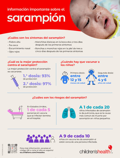 El sarampión es una infección viral que se transmite por el aire cuando una persona enferma tose, estornuda o respira cerca de otros. Los síntomas incluyen fiebre alta, tos, congestión nasal y una característica erupción cutánea que se extiende por el cuerpo.