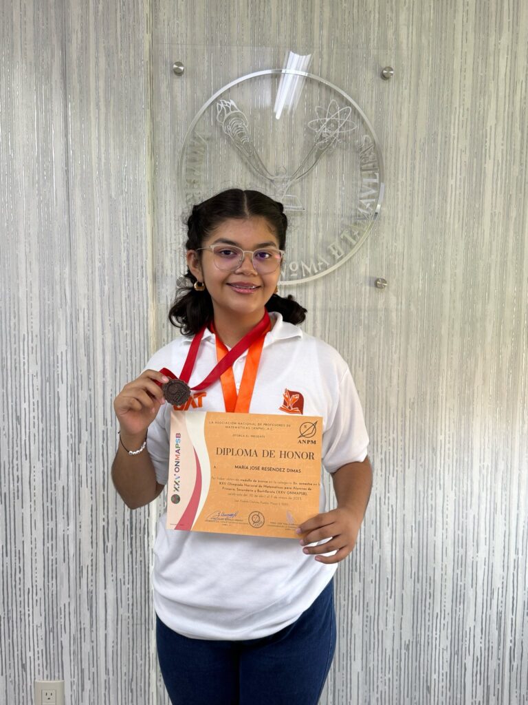 A través de sus redes sociales, el rector de la UAT, Dámaso Anaya Alvarado, felicitó a María José, alumna del segundo semestre de la Escuela Preparatoria Mante, por su excelente rendimiento académico que le permitió obtener la medalla de bronce en esta competencia nacional.