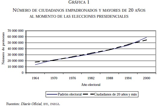 En las elecciones presidenciales del 2000, 2006 y 2012 , el abstencionismo electoral osciló entre 36.03 por ciento y 36.92 por ciento, un promedio de 33 millones de electores, según cifras oficiales del entonces IFE, ahora INE.
