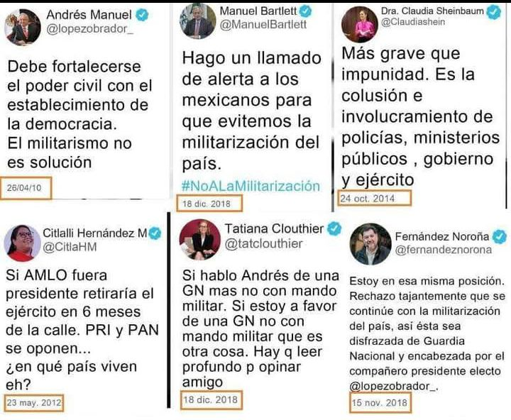 Una vez en el poder a López Obrador se le olvidó que demandó investigaciones judiciales contra las fuerzas armadas involucradas en crímenes contra civiles como en la matanza de estudiantes en la Plaza de las Tres Culturas, en Tlatelolco, en 1968.