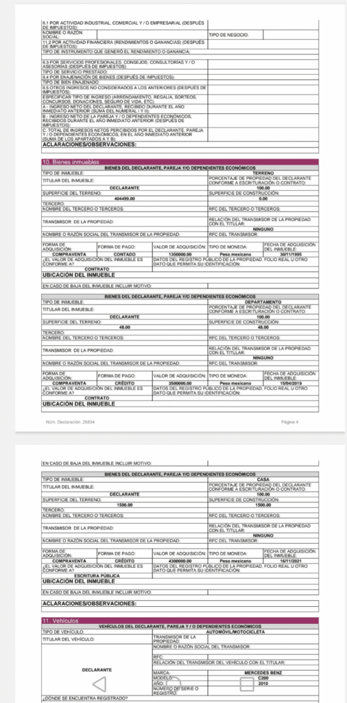 Casi 2 años después en 2021 compró una casa con valor de 4 millones 300 mil pesos . Superficie De mil 500 metros . (Después de Carmona).
