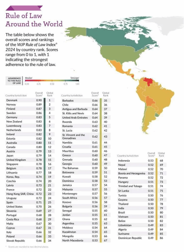 México enfrenta graves problemas de corrupción, pues lo sitúan en una posición crítica en el Índice Global de Estado de Derecho. El Proyecto de Justicia Mundial subraya que México ha experimentado un debilitamiento en el estado de derecho, con la corrupción como un factor significativo que afecta negativamente la gobernanza, la justicia y el desarrollo.