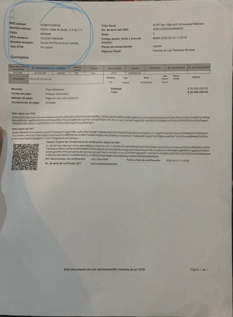Dado que los dólares le fueron entregados en un cheque, resulta muy fácil rastrear el destino de esos 30 millones 500 mil pesos una vez convertidos en un millón 500 mil dólares.