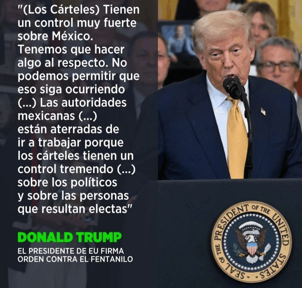 “Las autoridades Mexicanas están petrificadas de ir a trabajar porque los cárteles tienen un tremendo control sobre México”, dijo el Presidente Trump.