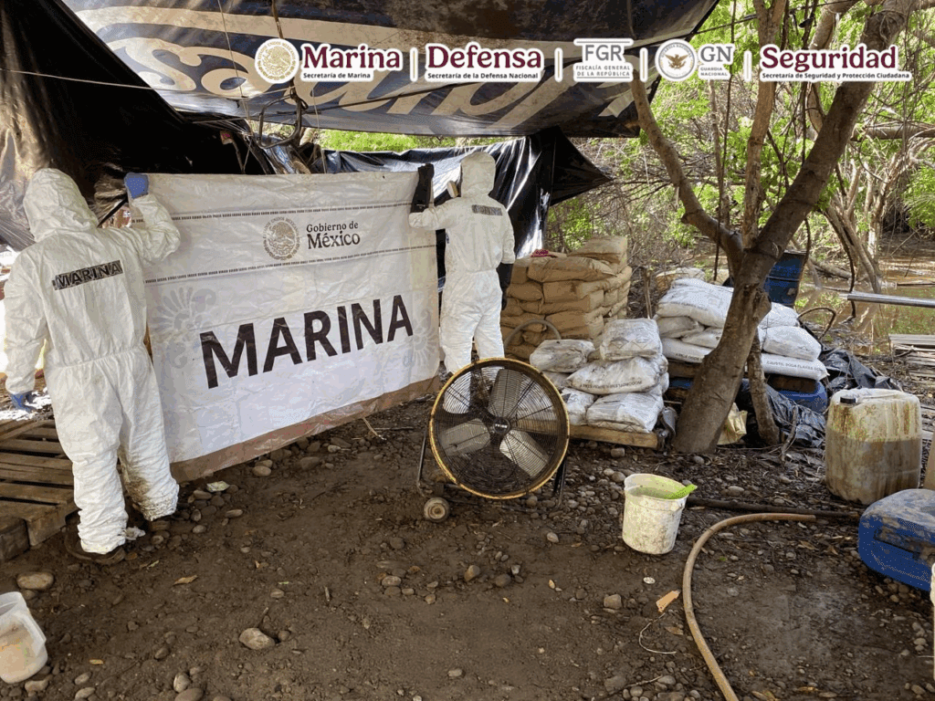 En una acción encabezada por elementos de la Secretaría de Marina (Semar) a través de la Armada de México, en coordinación con la Fiscalía General de la República (FGR), Secretaría de la Defensa Nacional (Defensa), Guardia Nacional (GN) y Secretaría de Seguridad y Protección Ciudadana (SSPC), localizaron y neutralizaron un laboratorio clandestino empleado para la elaboración de sustancias ilícitas, donde se aseguraron aproximadamente 12.8 toneladas de presunta metanfetamina en el municipio de San Blas, en Nayarit.