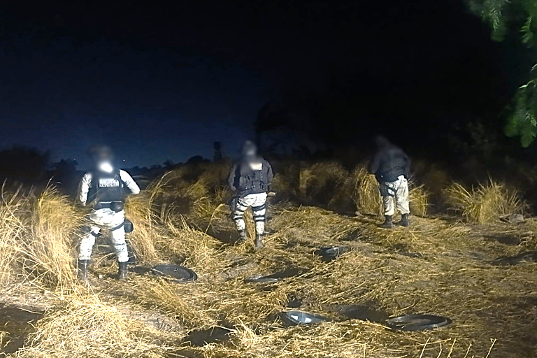 -En San Ignacio, elementos del Ejército Mexicano aseguraron una ametralladora, cinco armas largas, cargadores, 7,191 cartuchos, 29 cintas metálicas para cartuchos, cuatro artefactos explosivos improvisados, cinco chalecos balísticos y 10 placas balísticas.