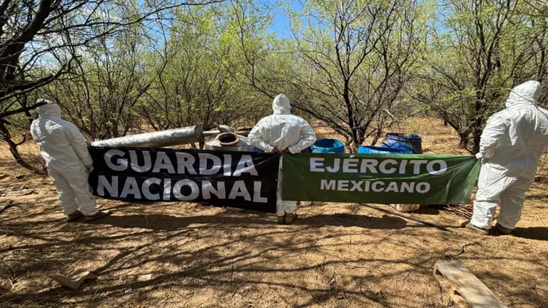 En el municipio de General Plutarco Elías Calles, se localizó e inhabilitó un área de concentración de material diverso para la fabricación de drogas sintéticas, se aseguraron 600 litros de sustancias para la elaboración de metanfetamina, un reactor de síntesis orgánica y un condensador. La afectación económica a la delincuencia organizada es de 12 millones de pesos.
