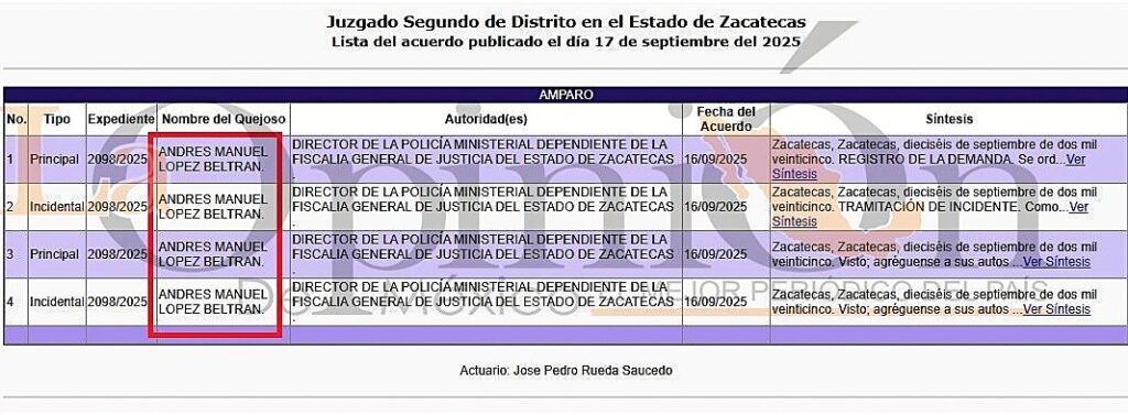 Ha generado revuelo judicial y mediático la noticia de que Andrés Manuel López Beltrán “Andy” y Gonzalo “Bobby” López Beltrán, hijos del expresidente Andrés Manuel López Obrador, figuran entre un conjunto de al menos 16 personas para quienes un ciudadano presentó una demanda de amparo ante el Juzgado Segundo de Distrito en Zacatecas, según el expediente 2098/2025).