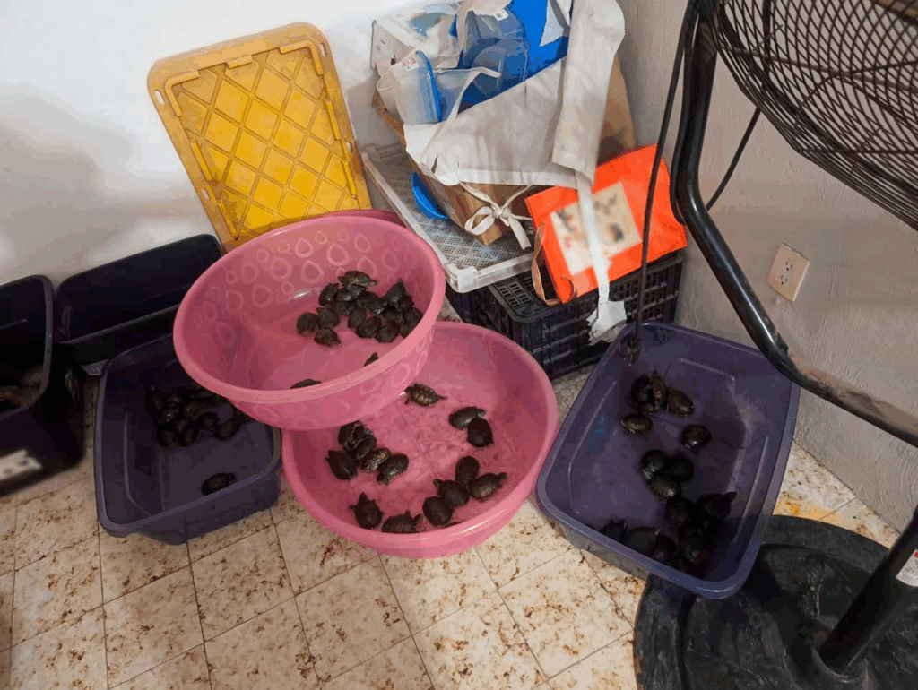 Durante el cateo ejecutado en cinco inmuebles, se aseguraron mil 569 kilogramos de pepino de mar, mil 188 kilogramos de aleta de tiburón, 39 kilogramos de buche de totoaba, dos mil 227 tortugas de diversas especies y 12 tortugas conocidas como casquito.