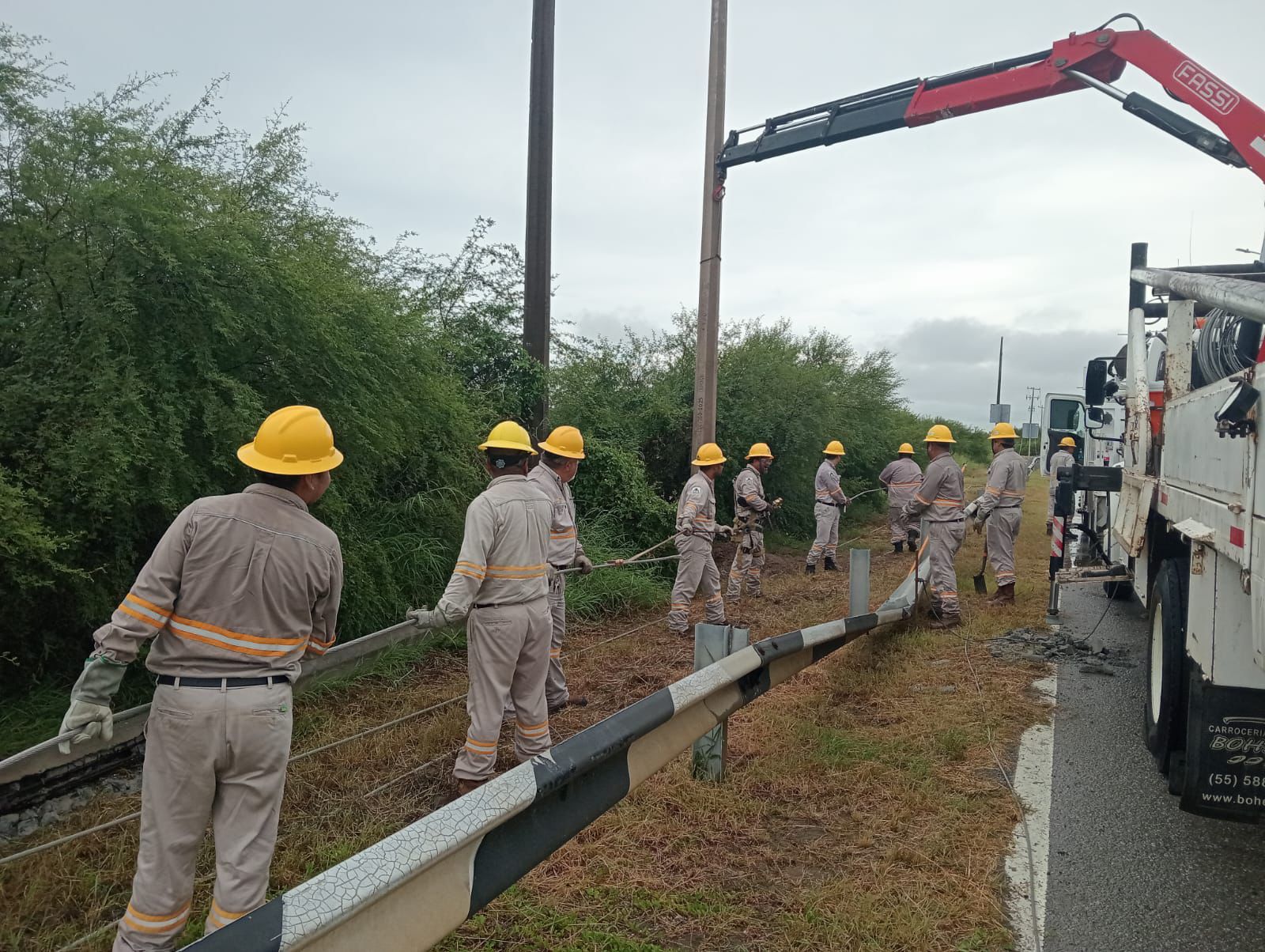 Desde el primer reporte de interrupciones, personal especializado de CFE fue desplegado para realizar las labores de restablecimiento del servicio. Para atender esta contingencia, se han dispuesto 380 trabajadores electricistas, 78 grúas articuladas, 90 vehículos, 22 plantas de emergencia, 3 drones y 4 helicópteros. Las labores de restablecimiento continúan de manera ininterrumpida hasta normalizar por completo el servicio eléctrico en las zonas afectadas.