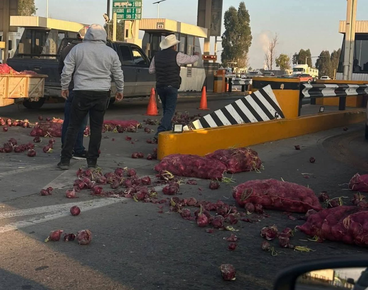 Desde el martes, campesinos de Zacatecas realizaron bloqueos en las casetas de Calera-Fresnillo, Vetagrande y Osiris; en esta última tiraron decenas de cebollas en protesta por el bajo precio al que se les compra. Piden un trato directo para dejar de enriquecer a los intermediarios que afectan tanto el precio de compra como el de venta final al consumidor.
