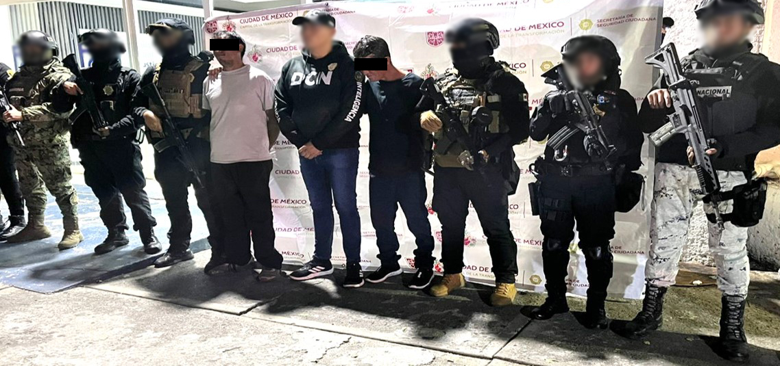 -En Iztapalapa, policías de la Secretaría de Seguridad Ciudadana (SSC), GN, Secretaría de Marina (Semar) y Fiscalía General de Justicia (FGJ) catearon un inmueble, detuvieron a dos personas, les aseguraron dos armas cortas, dos cargadores, 30 cartuchos y 10 kilos de cocaína. El costo de la droga asegurada es de 2.7 millones de pesos.