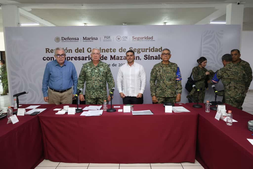 Por instrucción de la Presidenta Claudia Sheinbaum y para fortalecer la colaboración y coordinación con empresarios en el estado de Sinaloa, los titulares del Gabinete de Seguridad del Gobierno de México, junto con el gobernador del estado Rubén Rocha Moya, sostuvieron una reunión con empresarios del puerto de Mazatlán, para fortalecer los vínculos y robustecer la coordinación a favor de los ciudadanos en la entidad.