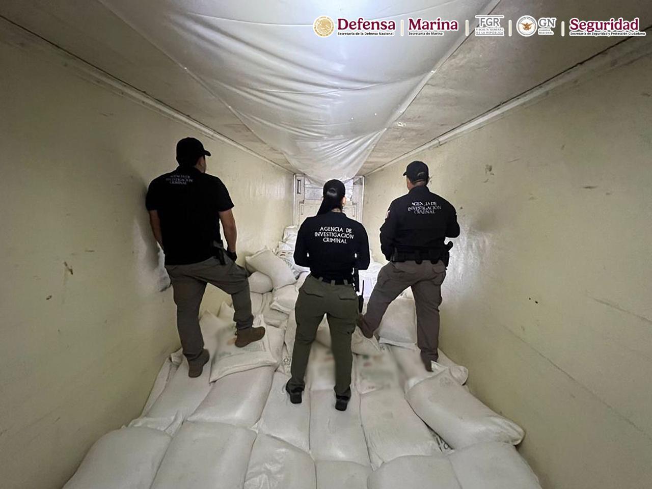 En la carretera Internacional México 15, a la altura del kilómetro 49 + 250, tramo Los Mochis – Navojoa, en el municipio de Ahome, los agentes de seguridad le marcaron el alto al conductor de un tractocamión acoplado a una caja refrigerada y, tras efectuar una inspección detallada de la unidad, hallaron siete costales que contenían la droga.