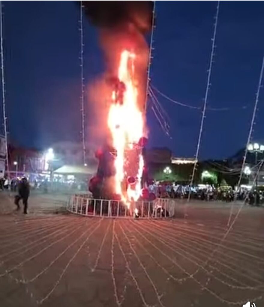 *Ciudadanos de Zitácuaro incendian el pino de navidad en protesta por la “fuga” del tránsito asesino de Ángeles Esquivel
