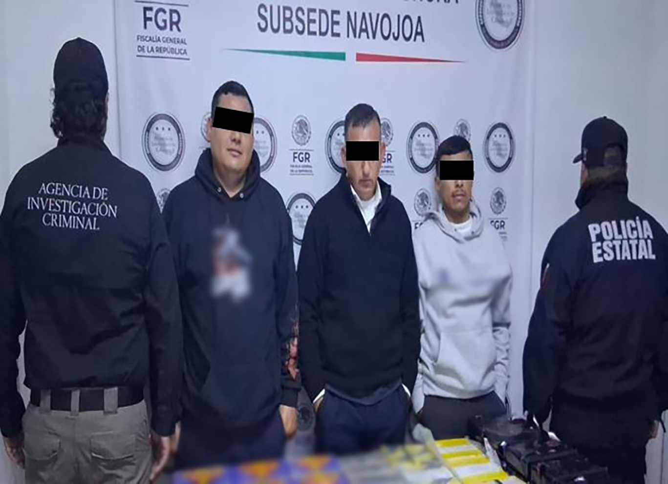 En Huatabampo, se detuvo a tres personas, se aseguraron 36 paquetes con 38 kilos fentanilo, seis paquetes con tres kilos de heroína y un autobús.