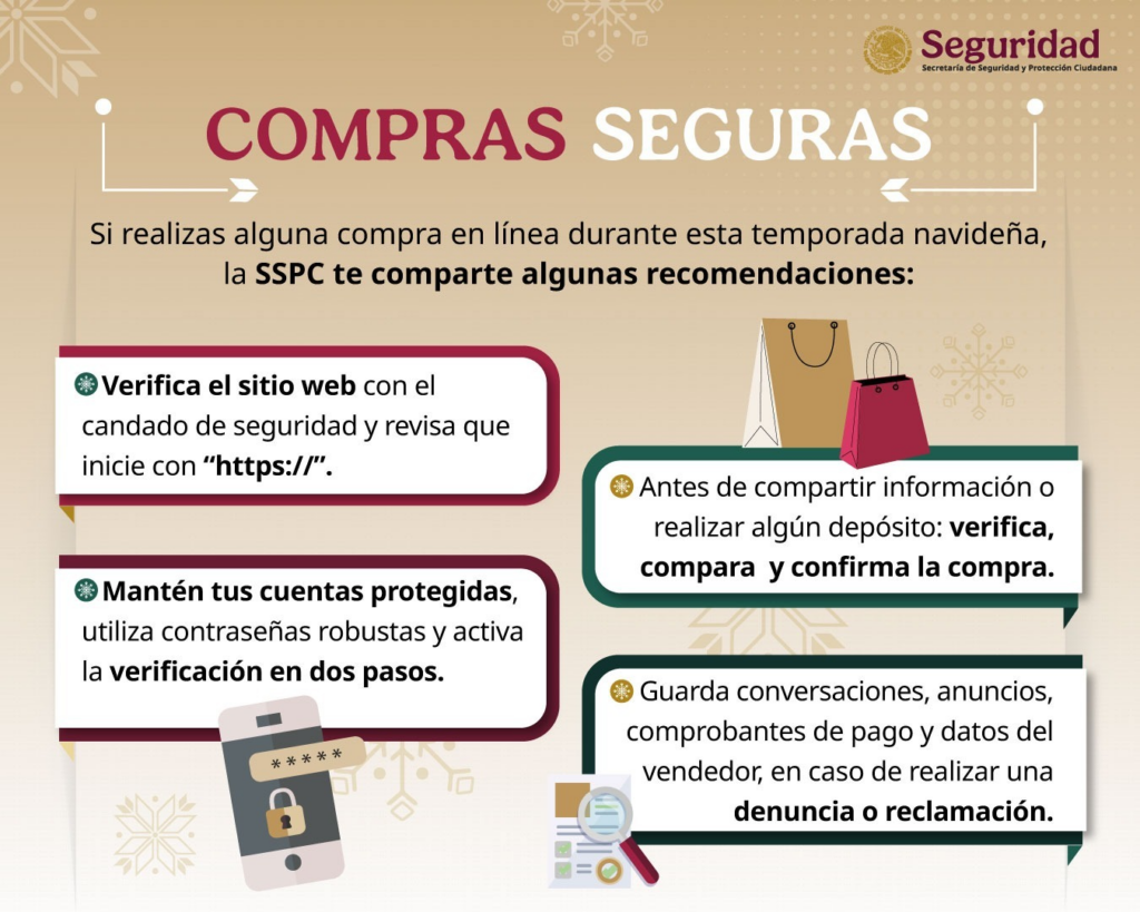 La Secretaría de Seguridad y Protección Ciudadana (SSPC), a través de la Unidad de Inteligencia, Investigación Cibernética y Operaciones Tecnológicas, comparte una guía de buenas prácticas para prevenir fraudes durante la temporada navideña.