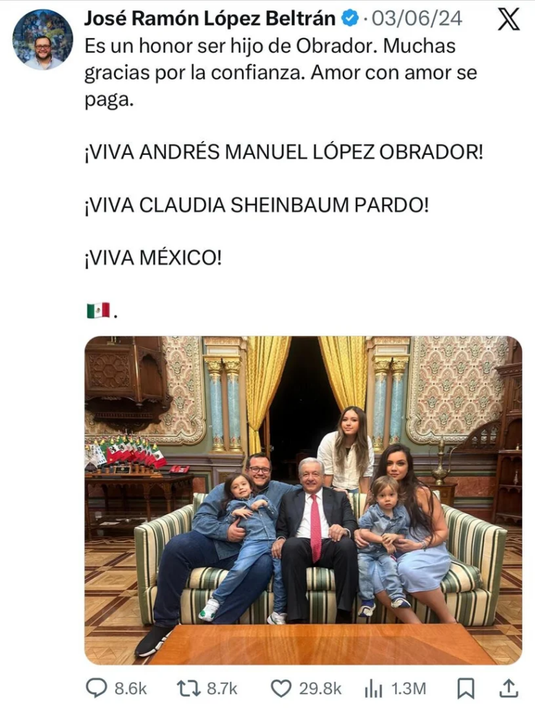 En meses recientes, también se difundieron imágenes de su hermano Andy López Beltrán en tiendas de marcas de lujo durante un viaje a Japón. Hasta ahora, José Ramón López Beltrán no ha hecho declaraciones públicas sobre el episodio, pero en el clip se observa que sí se dio cuenta de que estaba siendo grabado.