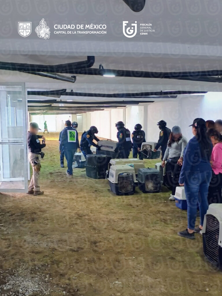 La FGJCDMX informó que se realizaron inspecciones ministeriales y dictámenes de medicina veterinaria forense, mediante los cuales se documentaron “probables actos de maltrato o crueldad contra 936 animales no humanos, en su mayoría perros, así como un grupo de gatos”.