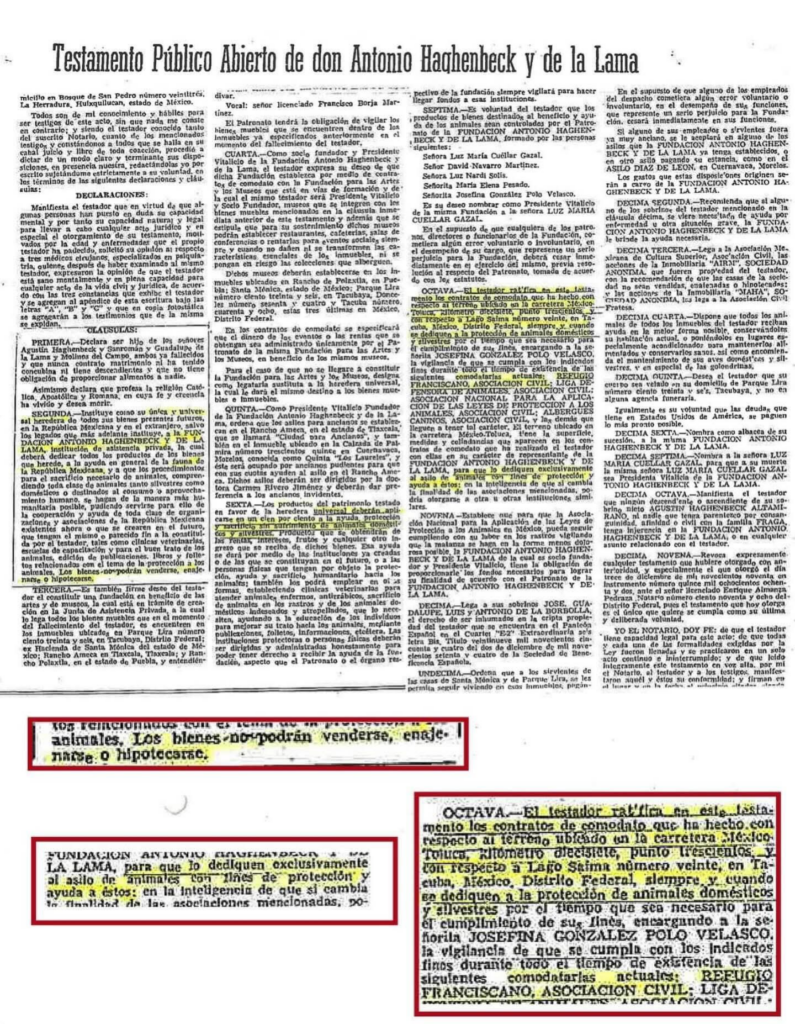 La venta —concretada por las representantes de la Fundación Verónica Blanco González y Carmela Rivero Jiménez— se realizó pese a lo establecido por el creador de la fundación, Antonio Haghenbeck, en un testamento público que prohíbe la venta y el uso del predio para actividades distintas al rescate de animales.
