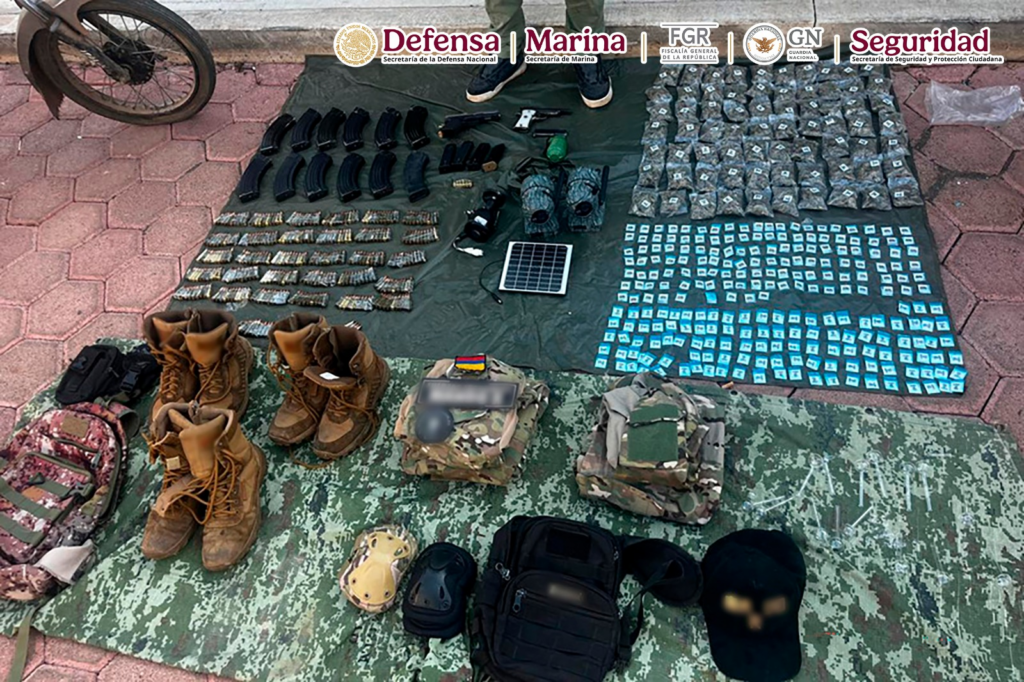 Cabe mencionar que, del 10 de noviembre de 2025 al 8 de enero de 2026, como resultado de las acciones coordinadas, se detuvo a 378 personas, se han asegurado 174 armas de fuego, 13,688 cartuchos, 651 cargadores, 296 vehículos, 192 artefactos explosivos, 53 kilos de material explosivo, 83 kilos de marihuana, 768 kilos de metanfetamina, 28,800 litros y 15,300 kilos de sustancias químicas, también se inhabilitaron 22 campamentos y 50 tomas clandestinas.