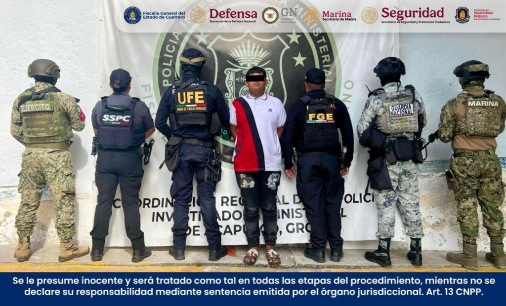 Resultado de trabajos de investigación, en Acapulco, Guerrero, elementos de la Secretaría de la Defensa Nacional (Defensa), Secretaría de Marina (Semar), Fiscalía General de la República (FGR), Guardia Nacional (GN), Secretaría de Seguridad y Protección Ciudadana (SSPC), junto con la Fiscalía General del Estado (FGE) y Secretaría de Seguridad Pública (SSP), ambas de Guerrero, cumplimentaron una orden de aprehensión contra un hombre por el delito de homicidio calificado, en agravio de tres personas.