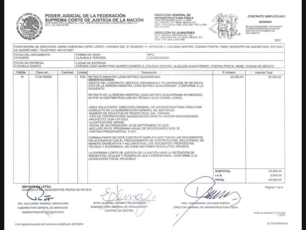 La Suprema Corte de Justicia de la Nación (SCJN) se encuentra en el ojo del huracán tras revelarse un gasto de 40 mil pesos para la realización de un retrato de la ministra Lenia Batres. La controversia ha escalado rápidamente, generando críticas y cuestionamientos sobre la congruencia de este desembolso con los principios de austeridad y el discurso de “primero los pobres” promovido por el gobierno actual.