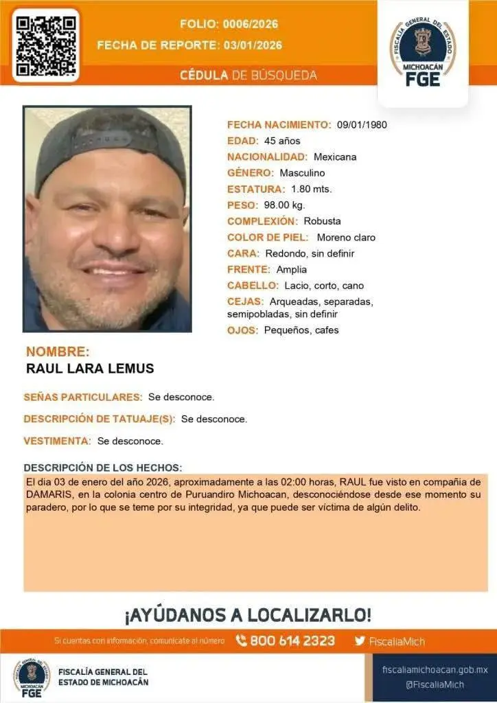 Los hechos que dieron origen a este caso ocurrieron durante la madrugada del sábado 3 de enero, cuando un grupo de sujetos armados ingresó de manera violenta al domicilio de la pareja, ubicado en la colonia Centro de Puruándiro. De acuerdo con los primeros reportes policiales, los agresores se llevaron por la fuerza a Damaris, Raúl y a su hijo de apenas dos años de edad.