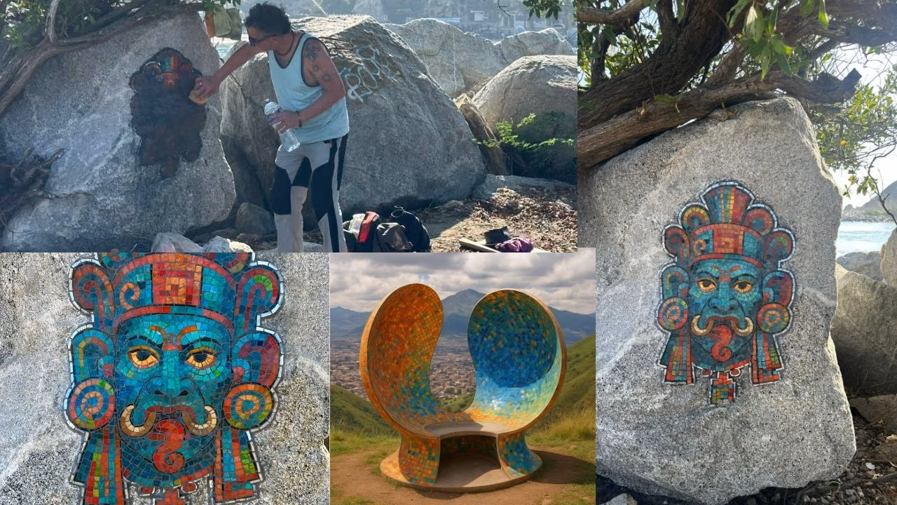 El arte que propongo no pertenece a un solo lugar ni a una sola clase social, está en una pequeña comunidad pesquera de la costa oaxaqueña llamada Chacahua, donde intervengo un rompeolas hecho de enormes rocas con figuras de mosaico.