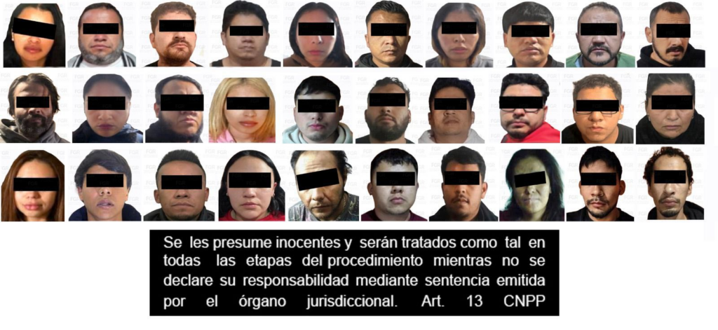 Cabe destacar que estas personas fueron detenidas en 12 cateos simultáneos ejecutados en el estado de Querétaro; dicha diligencia fue llevada a cabo por elementos de la Policía Federal Ministerial (PFM) de la Agencia de Investigación Criminal (AIC), en coordinación con el Gabinete de Seguridad del Gobierno de México, específicamente con la Secretaría de la Defensa Nacional (Defensa), Secretaría de Marina (Marina), Guardia Nacional (GN), Secretaría de Seguridad y Protección Ciudadana (SSPC), además de la Policía Estatal.