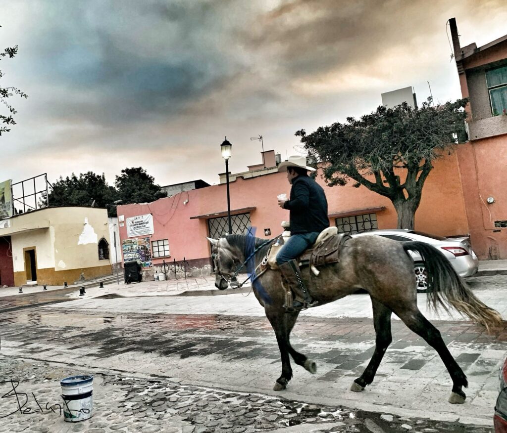”Triángulo Sagrado” de los otomí-chichimecas, junto con el cerro El Zamorano y el cerro El Frontón, un pueblo casi fantasma donde a lo lejos se escucha un narcocorrido a todo volumen desde una troca. Que canta de la caída del Mencho, por un amor a una mujer. Y la neblina, que nunca se había ido del todo, empezó a disiparse, como si el tiempo, después de todo, fuera un círculo que se cierra y así entre ese frente frío del fin del invierno y una amenaza más del patriarcado del tal Mencho.