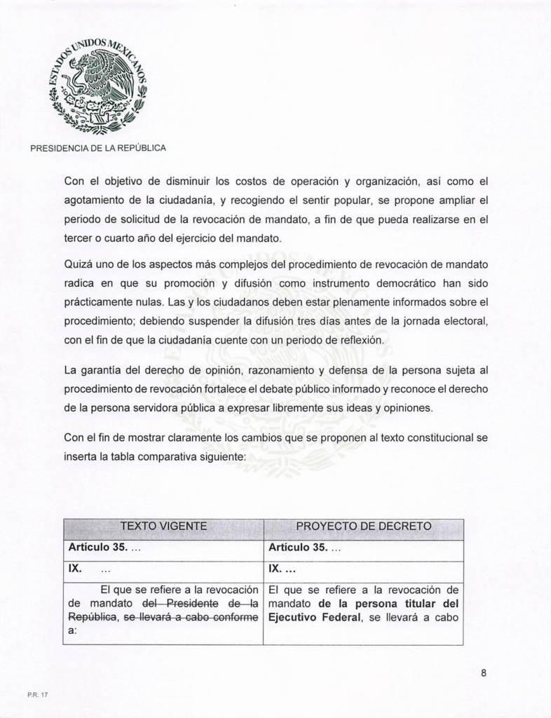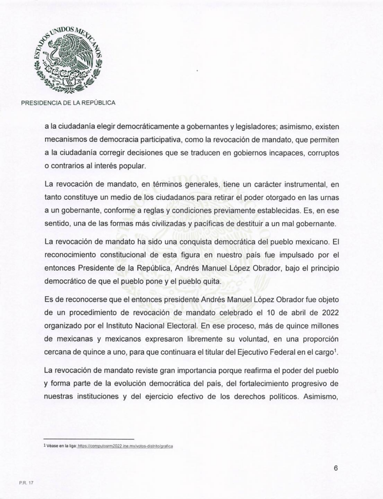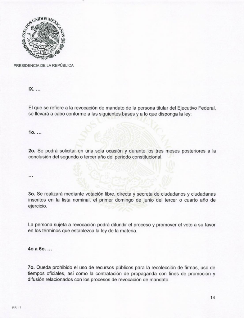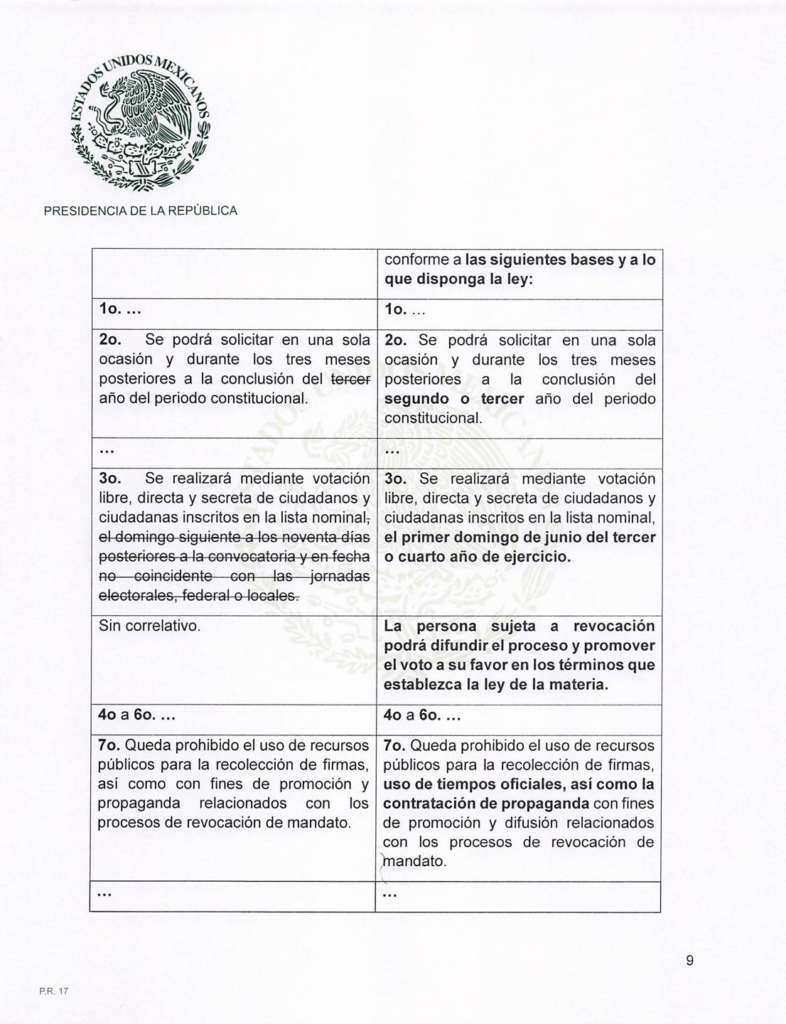 10.- Con relación a la Revocación de Mandato, se establece que la consulta de revocación se realice el primer domingo de junio del tercer o cuarto año de gobierno.