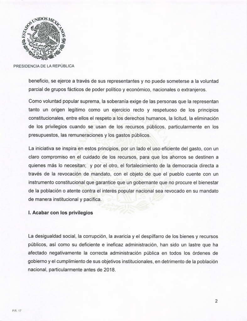 1.- El eje central de la propuesta del Plan B es la llamada “Austeridad Republicana”, que no es otra cosa que el recorte drástico a lo que la mandataria denomina “privilegios de la casta electoral”.