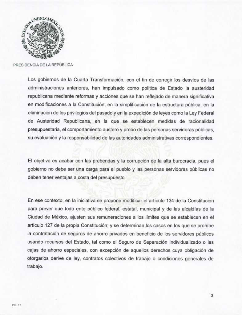 3.- Se pretende la eliminación de “gastos extras”, que son los gastos de seguros médicos privados, bonos de riesgo y gastos de representación con recursos públicos.
