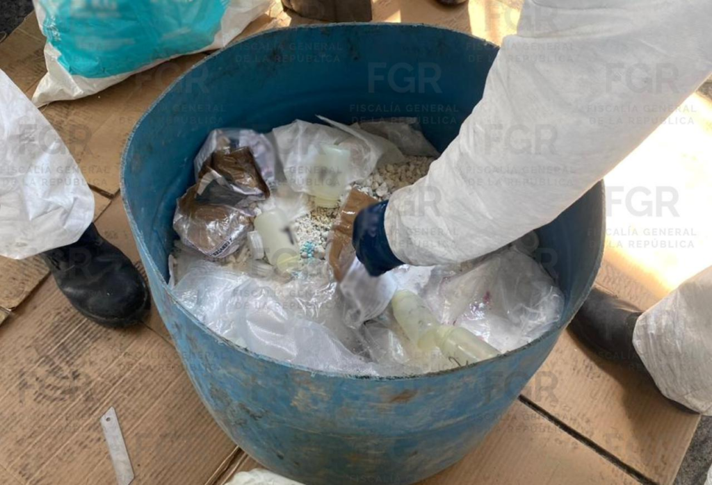 También se incineraron 212 pastillas de fentanilo, 15 kilos 991 gramos 500 miligramos de fentanilo y 49 objetos del delito como tanques de gas, ollas de metal, lámparas, reactor metálico y una centrifugadora.